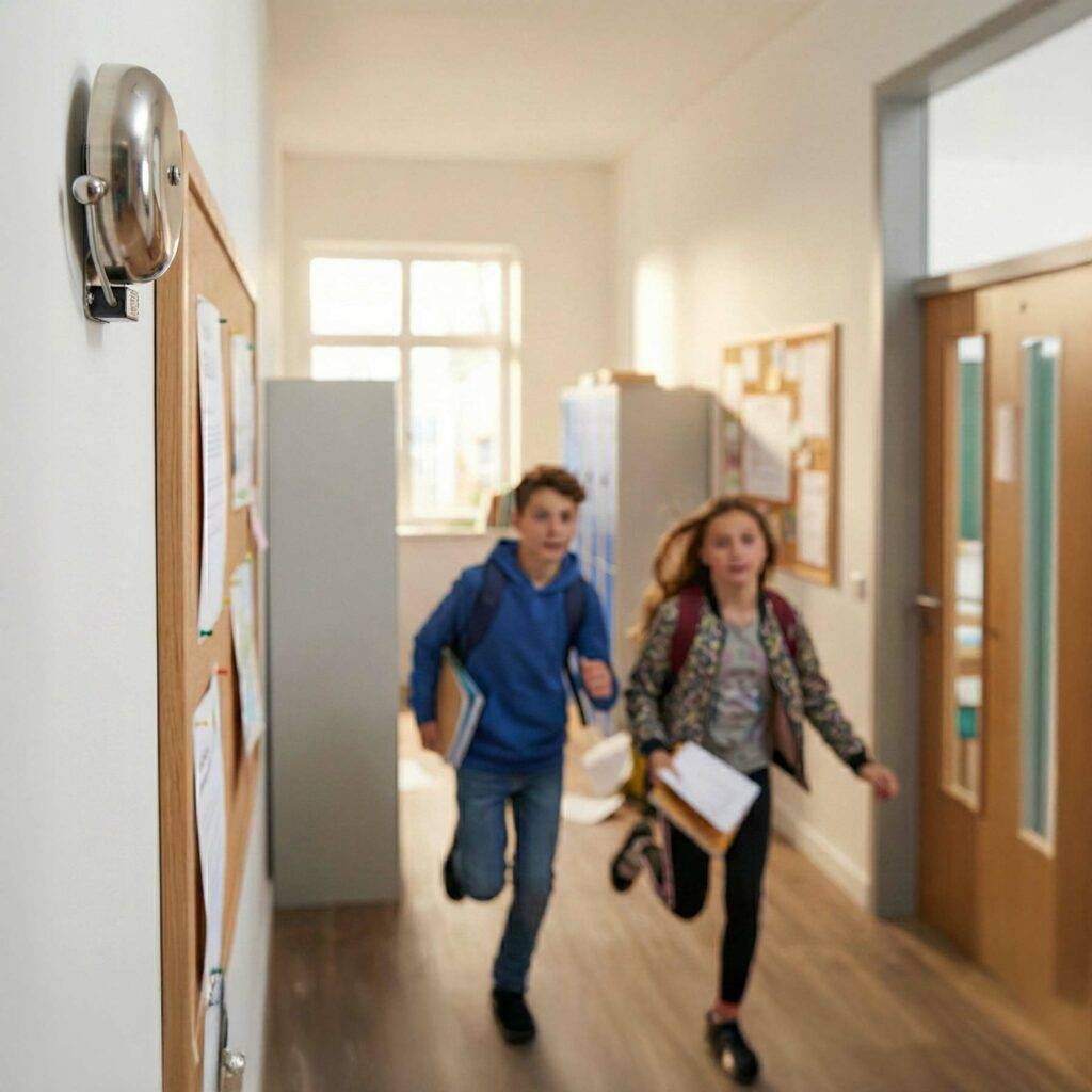 Die Eingangstür der Schule wird während des Unterrichts geschlossen gehalten. Schüler, die zu spät zur ersten Stunde kommen, müssen draußen warten und können im Zeitraum von 8:05 bis 8:13 Uhr klingeln.